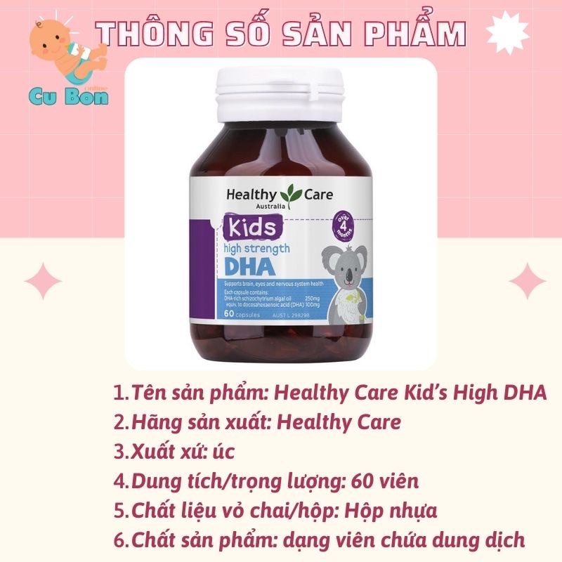 Giới thiệu Viên uống DHA cho bé từ 4 tháng Healthy Care của Úc hộp 60 viên