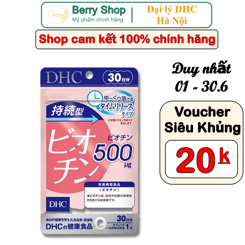 Viên Uống DHC Biotin Ngăn Rụng Tóc 30 Ngày (30 Viên) là sản phẩm thực phẩm chức năng hỗ trợ sức khoẻ & làm đẹp đến từ thương hiệu DHC Nhật Bản, giúp bổ sung hàm lượng 500μg* biotin thiết yếu cho cơ thể mỗi ngày, mang đến cho bạn làn da và mái tóc khoẻ đẹp.