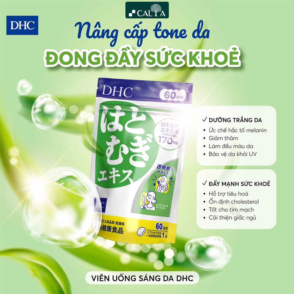 1. Viên Uống Trắng Da DHC Adlay Nhật Bản, Nuôi Dưỡng Da Từ Bên Trong - DHC Adlay Extract 30 Ngày 30 Viên - Mỗi viên có chứa 170mg bột ý dĩ; dầu thực vật chứa Vitamin E (dầu đậu nành, dầu cải, dầu ngô, dầu hướng dương, dầu bông): 11.25mg (tương đương 10mg Vitamin E) - Sản phẩm xua tan các vết thâm sạm trên da, nuôi dưỡng làn da sáng mịn kết hợp tăng cường sức đề kháng và bảo vệ làn da của bạn.