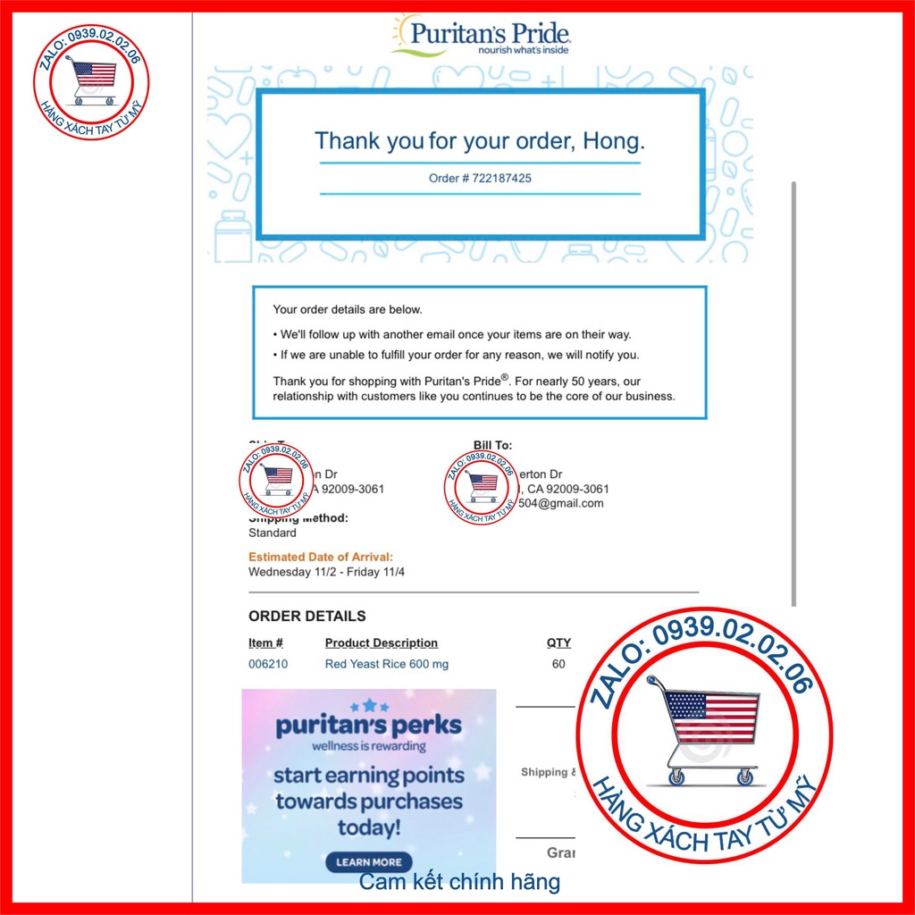 Sức Khỏe > Thực phẩm chức năng > Hỗ trợ sức khỏe > Viên uống giảm cholesterol tinh chất men gạo đỏ Puritan's Pride Red Yeast Rice 120 viên HẠN SỬ DỤNG 07/2026
