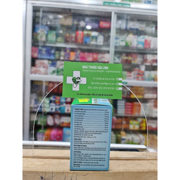 -‐---‐-------------------------------------------- ✅ THÀNH PHẦN: Cao Thiên niên kiện 150mg Cao Độc hoạt 150mg Cao Uy linh tiên 120mg Cao Tang kí sinh 100mg Cao Cốt toái bổ 100mg Cao Ngưu tất 80mg Cao Đương quy 50mg Cao Thổ phục 50mg