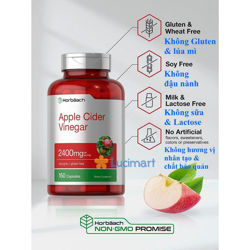 Giới thiệu Viên uống giấm táo hữu cơ Horbaach Apple Cider Vinegar 2400mg, hũ 150 viên [Hàng Mỹ hạn dùng 2025]