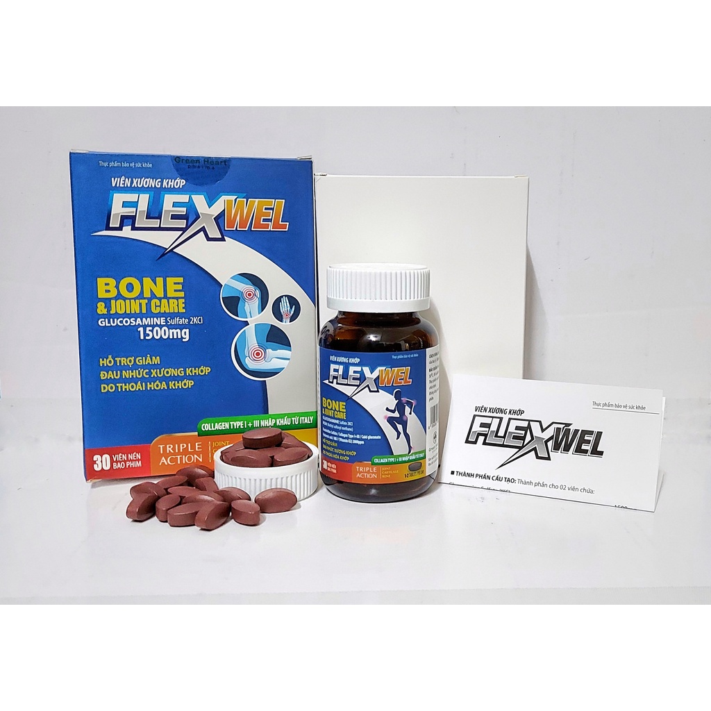 Viên Xương Khớp Flexwel Hỗ Trợ Giảm Đau Nhức Xương Khớp - lọ 30 viên 🍀THÀNH PHẦN: Glucosamine Sulfate 2KCI…………….1500mg