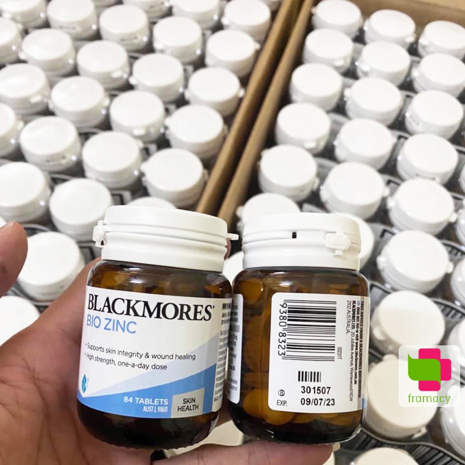 Kẽm được biết đến như một khoáng chất vi lượng cần thiết cho cơ thể con người. Kẽm can thiệp vào nhiều chuyển hóa của glucid, protein và acid nucleic. Khi cơ thể thiếu kẽm sẽ làm ảnh hưởng đến tất cả những gì có liên quan đến hoạt động nhân đôi của tế bào, sinh sản, tăng trưởng, liền sẹo và tính miễn dịch. Viên uống bổ sung kẽm Blackmores Bio Zinc của Úc là sự kết hợp giữa kẽm và nhiều dưỡng chất khác nhau giúp hỗ trợ việc điều trị mụn trứng cá và làm lành vết thương trên da, làm giảm các rối loạn về da như: viêm da và giúp duy trì làn da được săn chắc, tăng cường hệ thống miễn dịch đặc biệt là duy trì tinh trùng khỏe mạnh ở nam giới. 1. Thành phần: • Mỗi viên gồm 122mg Magnesium phosphate (magiê 25mg), 20mg Mangan axit amin chelate (2mg mangan), 860mg Retinyl axetat (vitamin A 750 microgram RE, 2500 IU), 50mg Pyridoxine hydrochloride (vitamin B6) 2. Công dụng: • Hỗ trợ kiểm soát sự mọc mụn trứng cá, làm giảm các triệu chứng rối loạn da nhỏ bao như viêm da, giúp duy trì làn da khỏe mạnh, tham gia vào các hoạt động tuyến nhờn của da • Hỗ trợ quá trình sản xuất, duy trì tinh trùng khỏe mạnh, tăng cường sức khỏe sinh lý cho nam giới • Duy trì chức năng miễn dịch, duy trì nồng độ vitamin A có trong cơ thể và giúp cơ thể vận chuyển, sự dụng vitamin A • Kết hợp với vitamin A nhằm chống lại sự oxy hóa ở da, hỗ trợ trong việc điều trị các bệnh về đề kháng da 3. Hướng dẫn cách dùng: • Uống 1 viên sau khi ăn hoặc theo sự chỉ định của bác sĩ • Trẻ em dưới 12 tuổi chỉ sử dụng theo sự chỉ định của bác sĩ • Để mang lại hiệu quả tốt hơn nữa, bạn nên kết hợp với tinh dầu hoa anh thảo Blackmores Evening Primrose Oil 4. Đối tượng sử dụng: • Người lớn và trẻ em trên 12 tuổi 5. Lưu ý: • Không dành cho người mẫn cảm với bất cứ thành phần nào của sản phẩm • Phụ nữ mang thai, đang cho con bú, người đang sử dụng bất cứ sản phẩm bổ sung hay sản phẩm kê đơn nào khác cần tham khảo tư vấn của chuyên gia y tế trước khi sử dụng • Không tự ý tăng liều lượng khi chưa có chỉ dẫn của chuyên gia y tế • Ngưng sử dụng và tham khảo ý kiến chuyên gia y tế nếu gặp bất cứ biểu hiện bất thường nào • Bảo quản nơi khô ráo, thoáng mát, tránh tiếp xúc trực tiếp với ánh nắng mặt trời, tránh nơi ẩm thấp và để xa tầm tay trẻ em 6. Mua Viên kẽm tự nhiên Blackmores Bio Zinc ở đâu chính hãng? • Framacy chuyên bán sỉ và lẻ các sản phẩm chăm sóc sức khỏe 100% chính hãng. Hàng chúng tôi có hạn sử dụng xa, chất lượng, giá hợp lý. Đội ngũ tư vấn và phục vụ tận tâm, hiểu biết, chuyên nghiệp • Địa chỉ: 267 Hoàng Hoa Thám, Ba Đình, Hà Nội • Hotline: +84 933 688 969 (Zalo bán buôn, bán lẻ) • Rất nhiều sản phẩm và thông tin bị hạn chế đăng tải trên Shopee nên mời bạn liên hệ Zalo và truy cập www.framacy.com hay www.facebook.com/framacy.online để có thêm nhiều thông tin và được tư vấn trực tiếp nhé ------------- Lưu ý: Sản phẩm không phải là thuốc, không có tác dụng thay thế thuốc chữa bệnh