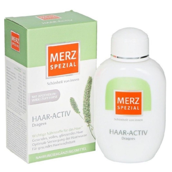2. Công dụng - Viên uống mọc tóc Merz kích thích sản sinh các tế bào nuôi dưỡng chân tóc giúp tóc luôn chắc khỏe, giảm tình trạng gãy rụng rõ rệt - Tăng cường vitamin đồng thời bổ sung dưỡng chất còn thiếu cho tóc. - Giúp tóc trở nên dày dặn, bóng mượt, chắc khỏe như ban đầu. - Kích thích mọc tóc nhanh và nhiều hơn. - Hỗ trợ làm sáng da, giúp làn da thêm tươi trẻ, mịn màng.