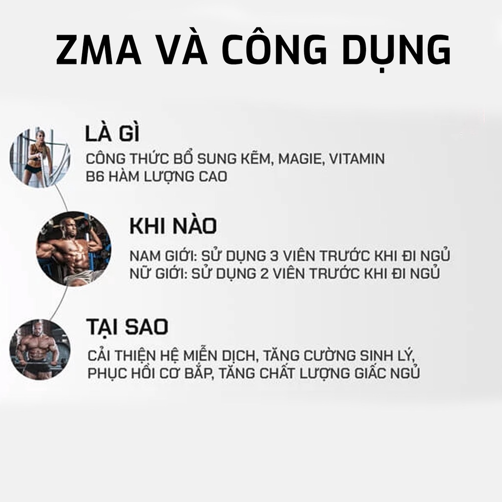 🩸CÔNG DỤNG CỦA SẢN PHẨM VIÊN UỐNG BỔ SUNG VITAMIN VÀ KHOÁNG CHẤT GIÚP CẢI THIỆN GIẤC NGỦ VÀ PHỤC HỒI CƠ BẮP NOW ZMA hay zma của EVL (Z matrix) - Tăng cường sức khỏe tổng thể: Việc bổ sung kẽm, magie và Vitamin B6 đóng vai trò quan trọng trong việc cải thiện sức khỏe miễn dịch của bạn. Thiếu kẽm và magie cơ thể bạn sẽ bị ảnh hưởng như: phục hồi chấn thương không hiệu quả, lão hóa, các bệnh mãn tính như mất ngủ thường xuyên... - Hỗ trợ tuyệt vời trong việc cải thiện giấc ngủ: Sự kết hợp của Kẽm và Magie giúp cải thiện chất lượng của giấc ngủ như ngủ sâu hơn, thư giãn hệ thần kinh, ngủ nhanh hơn và chu kỳ ngủ được ổn định. - Kiểm soát lượng đường trong máu tránh tình trạng béo phì và bệnh tiểu đường.
