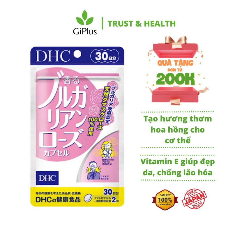 Viên Uống Thơm Cơ Thể Hương Hoa Hồng 30 Ngày DHC Bulgarian Rose Capsule là sản phẩm được chiết xuất từ tinh dầu hoa hồng thiên nhiên đến từ Bungari. Bằng cách thay đổi mùi trong tuyến mồ hôi chỉ sau 2-3h uống, những thành phần trong viên uống giúp cơ thể bạn có mùi thơm nhẹ nhàng, tự nhiên. Bên cạnh đó, hỗ trợ thanh lọc cơ thể, cải thiện các vấn đề nội tiết tố, giảm mùi cơ thể ngay khi bạn vận động đổ mồ hôi nhiều. __________________________________________ 1. Thông tin sản phẩm: Thành phần: Dầu hoa hồng, Vitamin E, Carbohydrate, Protein Quy cách đóng gói: Gói 60 viên Thương hiệu: DHC Xuất xứ: Nhật Bản Hạn sử dụng (Exp): Xem trên bao bì sản phẩm