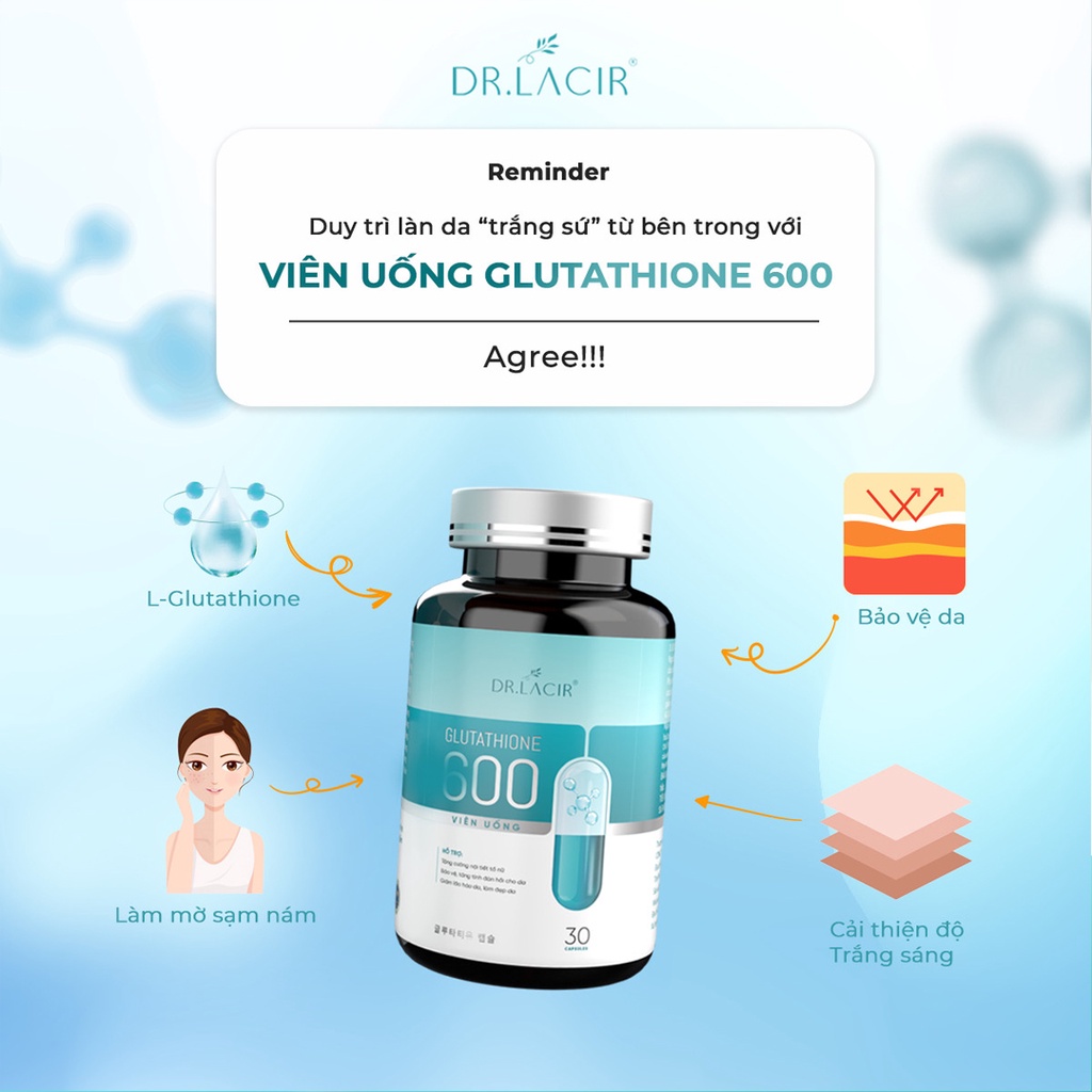 Giới thiệu Viên uống trắng da Glutathion 600 Dr lacir giúp mờ nám, hỗ trợ làm đẹp da, tăng cường nội tiết tố nữ estrogen