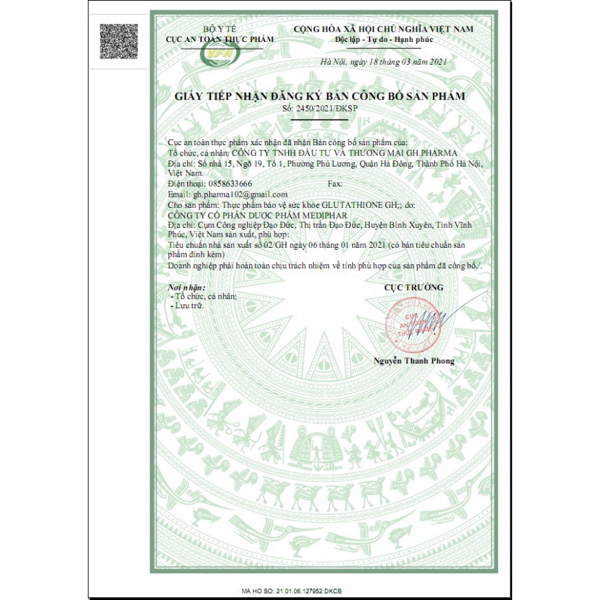SẢN PHẨM GLUTATHIONE COLLAGEN GH ĐƯỢC PHÂN PHỐI ĐỘC QUYỀN BỞI CÔNG TY CỔ PHẦN DƯỢC VINACAO 1. Thành phần viên uống trắng da Glutathione Collagen GH: - Glutathione 1200mg - Collagen peptide 400mg - Vitamin C 40mg - L-Cystine 20mg - Chiết xuất sâm tố nữ 20mg - Chiết xuất dương xỉ 10mg - Chiết xuất quả lựu đỏ 10mg - Alpha lipoic acid 10mg - Phụ liệu vừa đủ 2 viên. 2. Công dụng viên uống trắng da Glutathione Collagen GH: - Bổ sung Glutathione, vitamin C giúp tăng cường sức đề kháng, tăng cường hệ miễn dịch. - Hỗ trợ chống oxi hóa hạn chế quá trình oxi hóa, hỗ trợ giảm nám sạm da, tàn nhang, làm sáng da, trắng da, giảm thâm nám. 3. Đối tượng sử dụng viên uống trắng da Glutathione Collagen GH: - Dùng cho người có sức đề kháng kém, hệ miễn dịch kém, thường xuyên tiếp xúc và làm việc trong môi trường độc hại. - Người cần cung cấp các chất chống oxi hóa, người bị lão hóa da, da nhăn, da khô sạm, nám, tàn nhang. 4. Cách sử dụng viên uống trắng da Glutathione Collagen GH: - Uống 1-2 viên mỗi ngày, sau bữa ăn. 5. Tiêu chuẩn: TCCS 6. Bảo quản: Nơi khô ráo, thoáng mát, tránh ánh nắng trực tiếp HOTLINE: 0889513333 / Sản phẩm này không phải là th.u.ốc và không có tác dụng thay thế th.u.ốc ch.ữa bệ.nh. ---------------------------- THẢO DƯỢC VINACAO CAM KẾT CUNG CẤP SẢN PHẨM CHÍNH HÃNG 100% - NÓI KHÔNG VỚI HÀNG GI.Ả, HÀNG NH.ÁI, HÀNG KÉM CHẤT LƯỢNG
