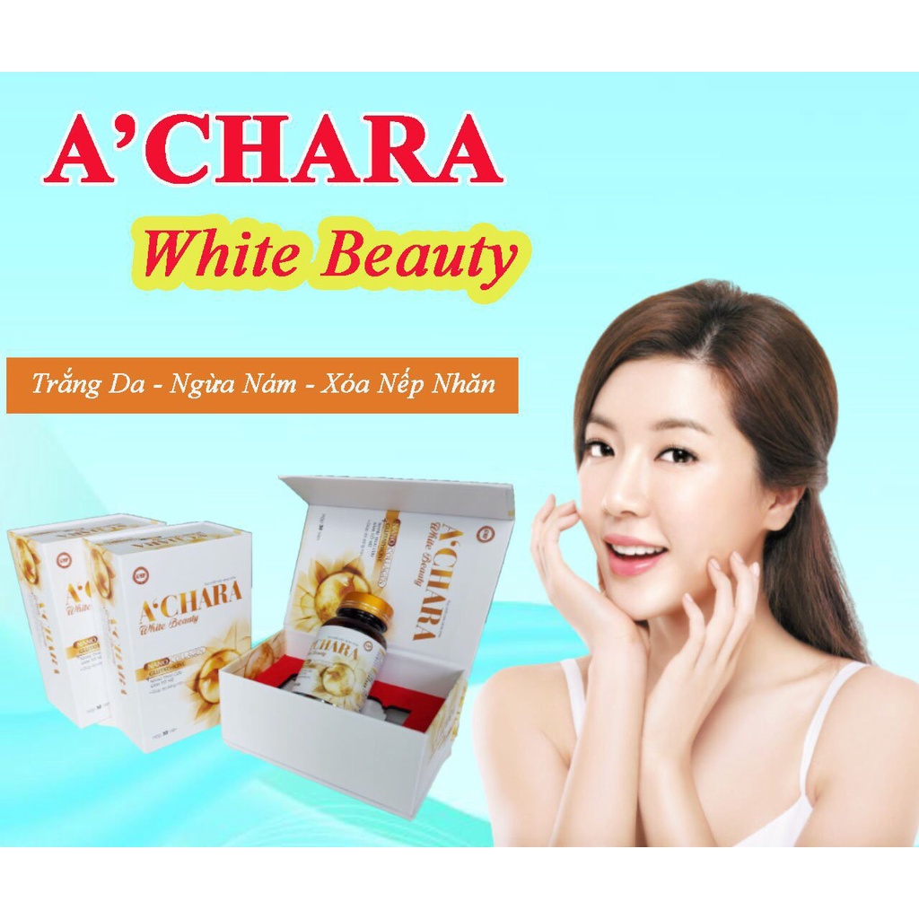Giới thiệu Viên uống trắng da toàn thân A'CHARA white beauty nano collagen, glutathione, nhau thai cừu, sâm tố nữ giúp da sáng mịn