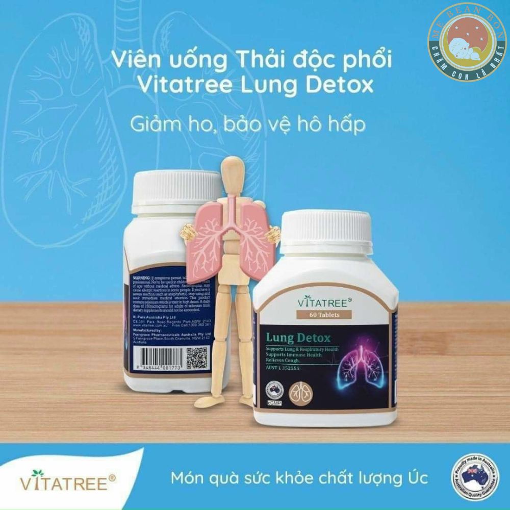 Viên uống Vitatree Lung Detox 60 viên của Úc giúp giải độc phổi A. GIỚI THIỆU: Viên uống giải độc phổi Vitatree Lung Detox của Úc là sự lựa chọn tuyệt vời cho những người hút thuốc lá hoặc thường xuyên tiếp xúc với môi trường ô nhiễm. ✔ Viên uống giải độc phổi Vitatree Lung Detox của Úc giúp thanh lọc, giải độc cho phổi, làm sạch phổi do môi trường ô nhiễm hay khói thuốc lá. ✔ Sản phẩm nổi tiếng được ưa chuộng tại Úc và một số quốc gia trên Thế giới. ➤ Phổi là bộ phận quan trọng nhất của hệ hô hấp, có chức năng trao đổi trí để duy trì sự sống. Phổi tiếp xúc trực tiếp với không khí môi trường bên ngoài, nên rất dễ bị vi khuẩn, vi rút hoặc chất độc hại gây ra các vấn đề: ho khan, ho có đờm, khó thở, đau ngực, nặng hơn cho phổi, phế quản, lao phổi,... ➤ Đặc biệt, với những người hút thuốc lá hoặc làm việc trong môi trường ô nhiễm, nguy cơ mắc vấn đề về hô hấp là rất cao.