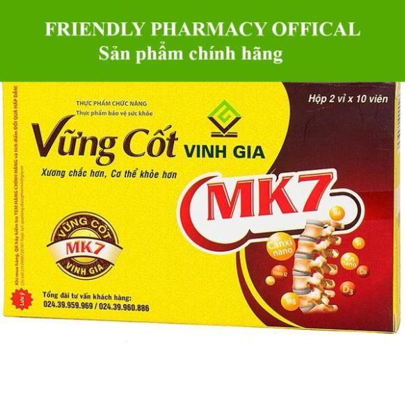 +Quy cách: Hộp 2 vỉ x 10 viên Lưu ý: Sản phẩm này không phải là thuốc và không có tác dụng thay thế thuốc chữa bệnh., Sản phẩm có bổ sung vitamin K2 (MK7), nên hỏi ý kiến bác sĩ khi đang dùng thuốc chống đông máu (như Warfarin, Coumadin, Heparin), hoặc các thuốc khác, hoặc khi đang mắc một bệnh khác. Sản xuất: CÔNG TY TNHH DƯỢC PHẨM USAPHA Phân phối bởi: CÔNG TY CỔ PHẦN DƯỢC PHẨM VINH GIA