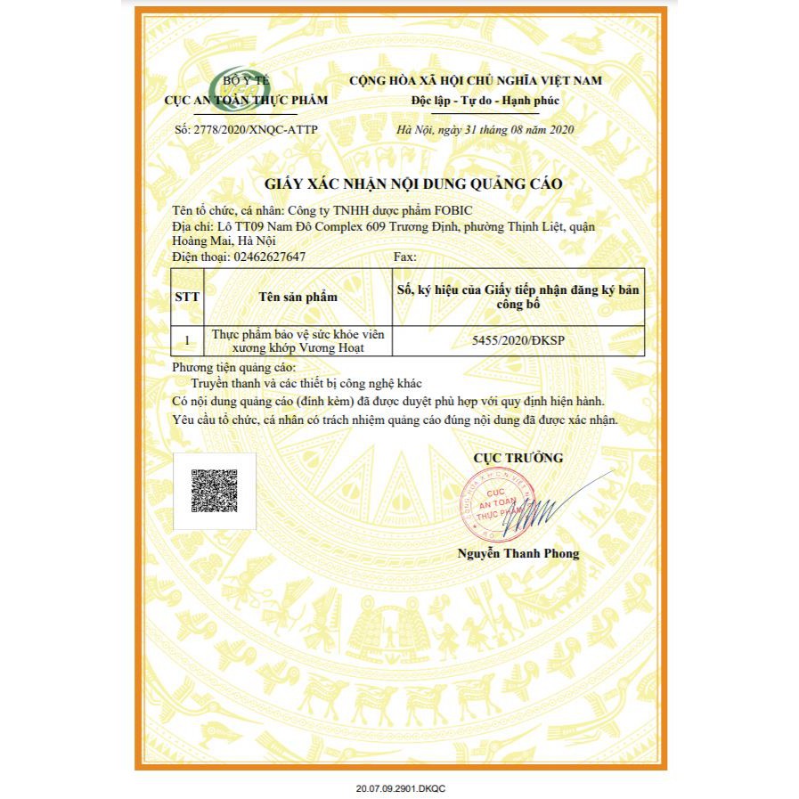 - Phân phối bởi: Công ty TNHH Dược Phẩm FOBIC Địa chỉ: Lô TT 09, Nam Đô Complex, số 609 Trương Định, Hoàng Mai, Hà Nội