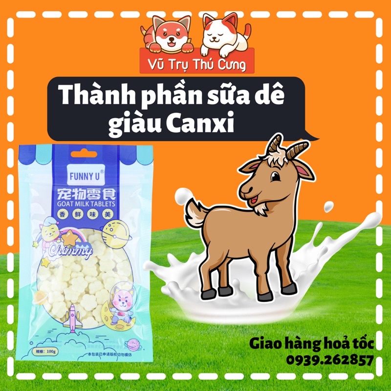 Xương thưởng sữa dê Funny U 100g bổ sung canxi dành cho thú cưng - Xương sữa được làm từ sữa dê nguyên chất, giàu vitamin, khoáng chất và protein, rất tốt cho sức kh.oẻ của thú cưng - Xương sữa là món thưởng tuyệt vời cho chú cún hay mèo nhà bạn, giàu dưỡng chất và vô cùng ngon miệng. ---------- THÔNG TIN NHÀ BÁN HÀNG "VŨ TRỤ THÚ CƯNG" 🏯 149 Đặng Văn Ngữ, Phú Nhuận, HCM 📞 0939.262857