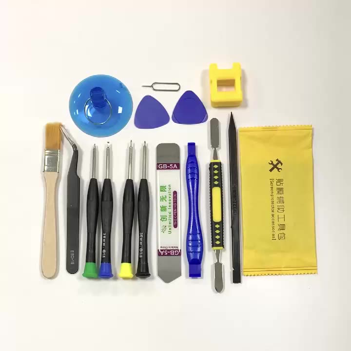 Bộ vít đa năng 16 món hỗ trợ anh em tháo lắp máy ip, ipads dể dàng Gồm 4 cây vít 1 cây + 1.5 1 cây -1.5 1 cây Y 0.6 1 cây sao 0.8 1 cây nhíp 1 cây cọ 1 cây nạy máy 5A 1 cây fe nhựa 1 cây xà beng thép 1 cây xà beng nhựa 1 hít màn hình 1 cây chọt sim 1 nam châm 1 khăn lau 2 fe nhựa