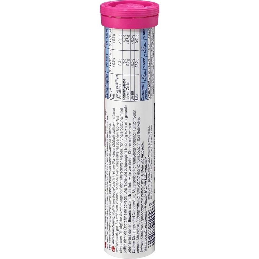 - Viên sủi Vitamin B12 Thơm dịu như singum dâu, có lợi cho hệ thống miễn dịch. Nghiên cứu hiện nay cho thấy bổ sung vitamin B12 cùng folate giúp giảm nguy cơ mắc một số loại ung thư. - Bổ sung Magie, Canxi và 6 nguyên tố vi lượng thiết yếu cho cơ thể (kẽm, chrome, mangan, đồng, selenium, molypden). Cung cấp đầy đủ hàng ngày các khoáng chết trên trong mỗi viên sủi, là những vi chất mà chế độ ăn uống không cân bằng hàng ngày không đủ cung cấp cho cơ thể. - Giúp tăng cường sức khỏe & phòng chống những bệnh do thiếu khoáng chất gây ra… - Vitamin B12 có lợi cho sự trao đổi chất của cơ thể, giúp duy trì năng lượng - Không cần thêm đường, không chứa Gluten/ Lactose (thay vào đó bằng chất tạo ngọt tự nhiên) “