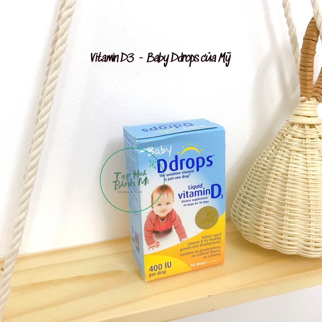 Baby Vitamin D3 Ddrops 400IU của Mỹ là sản phẩm bổ sung 400 IU vitamin D mỗi ngày hỗ trợ tăng khả năng hấp thu Canxi giúp phát triển x.ương, răng và tăng cường hệ m.iễn dị.ch dành cho bé dưới 1 tuổi.
