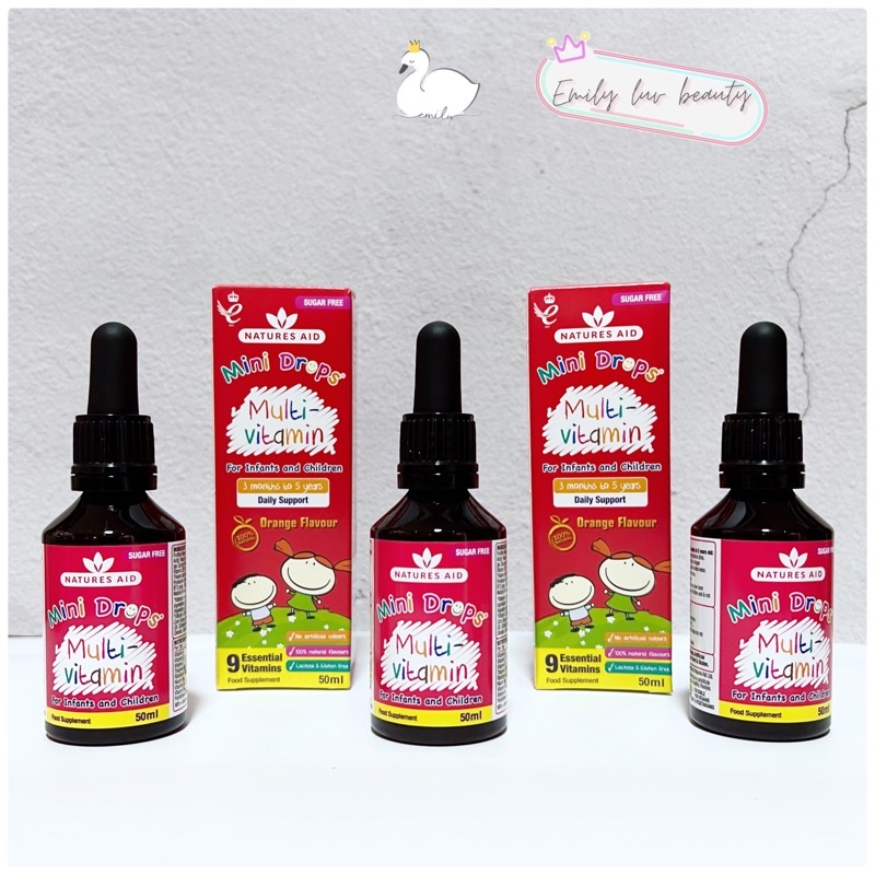 Trong những năm tháng đầu đời, nhu cầu của trẻ về dinh dưỡng cũng như các loại vitamin là vô cùng cao. Vitamin đóng vai trò quan trọng trong sự tăng trưởng và phát triển của bé. Vitamin tổng hợp Natures Aid Multi Vitamin Drop - Anh Quốc là một sản phẩm có công thức cân bằng kết hợp 9 loại vitamin thiết yếu như A, B1, B2, B3, B5, B6, B12, C và D, giúp hỗ trợ cho sự phát triển toàn diện của trẻ. Sản phẩm chiết xuất từ thiên nhiên, an toàn, tinh khiết, không chất bảo quản, không màu nhân tạo, không thêm đường, không kim loại nặng, không ảnh hưởng xấu đến hệ tiêu hóa của bé, dành cho các bé biếng ăn trong độ tuổi từ 3 tháng - 5 tuổi, hỗ trợ cơ thể bé hấp thụ tốt và cân bằng các chất dinh dưỡng, nhờ đó mà bé ăn ngon, tăng sức đề kháng, khỏe mạnh và thông minh hơn theo từng độ tuổi. 1. Thành phần mỗi 1ml: • Vitamin A 400μg • Vitamin D 7.5μg (300iu) • Vitamin C 40mg • Thiamin (B1) 0.5mg • Riboflavin (B2) 0.5mg • Niacin (B3) 8mg • Vitamin B6 0.5mg • Vitamin B12 1μg • Pantothenic Acid (B5) 2mg 2. Công dụng: • Vitamin C tăng đề kháng, Vitamin D hỗ trợ canxi chắc xương, Vitamin A sáng mắt • Cung cấp các vitamin thiết yếu cho sự tăng trưởng và phát triển khỏe mạnh trẻ ngay từ những năm tháng đầu đời • Giúp bé ăn ngon, tiêu hóa tốt, cải thiện tình trạng biếng ăn của trẻ • Hỗ trợ tăng sức đề kháng và tăng hệ miễn dịch cho trẻ • Tăng cường chuyển hóa glucid giúp bé có cảm giác thèm ăn và muốn ăn • Cân bằng và ổn định lại dinh dưỡng cho trẻ • Giúp trẻ phát triển toàn diện về thể lực và trí tuệ 3. Hướng dẫn cách dùng Multivitamin Natures Aid: • Uống 1ml/lần/ngày, tốt nhất là ngay sau bữa ăn • Có thể pha với nước hoa quả hoặc nước để uống • Hương cam, thơm ngon, ngọt dịu dễ uống, hấp thu nhanh 4. Đối tượng sử dụng: • Trẻ từ 3 tháng tới 5 tuổi • Trẻ suy dinh dưỡng, thấp còi • Trẻ hấp thụ kém • Trẻ biếng ăn, thiếu chất • Trẻ thiếu cân, sinh thiếu tháng • Trẻ sau khi ốm, trẻ hay ốm vặt Lưu ý: Sản phẩm không phải là thuốc, không có tác dụng thay thế thuốc chữa bệnh