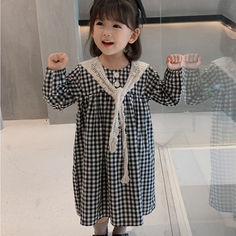 Giới thiệu VL39 Size90-130 (9-28kg) Váy đầm bé gái (Đầm vintage vải thô kèm khăn) Thời trang trẻ Em hàng quảng châu