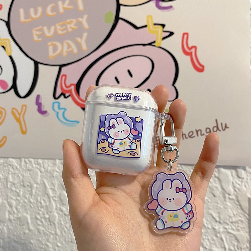 Vỏ bảo vệ hộp tai nghe trong suốt in họa tiết Space Man dễ thương cho Airpod 1/2/Pro YKD