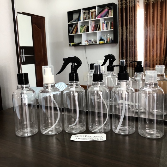 Vỏ chai nhựa lớn 300ml / 200ml - Chai nhựa Pet đựng dầu gội vòi nhấn nhỏ giọt - Chai nhựa vòi bơm , xịt giọt , nắp Đen