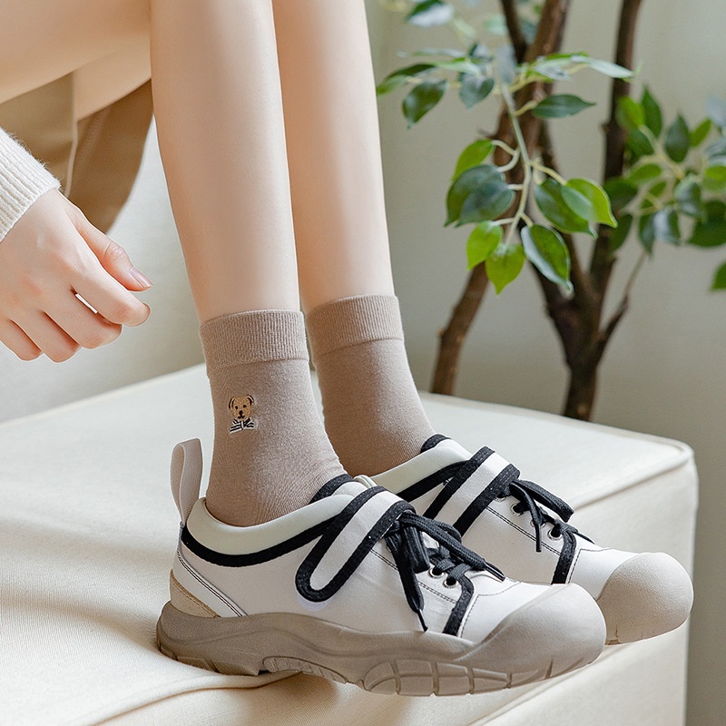 Thời Trang Nữ > Vớ/ Tất > Tất > Vớ cổ trung chất liệu polyester mềm mại thoáng khí khử mùi thêu họa tiết gấu hoạt hình phong cách Hàn Quốc cổ điển cho nữ
