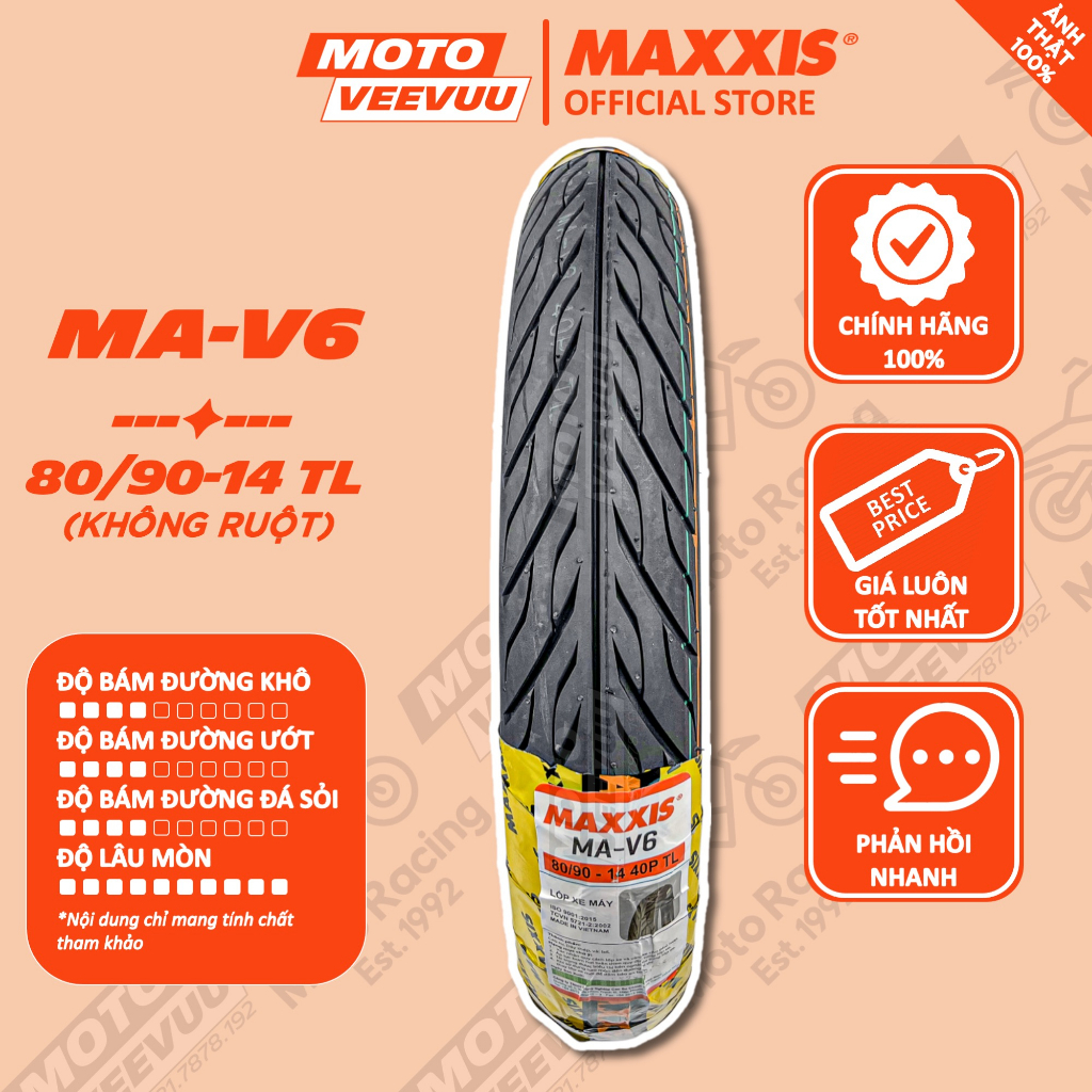 Giới thiệu Vỏ lốp xe máy MAXXIS MA V6 Xương cá 80/90-14 TL 80 90 14 (Lốp không ruột)
