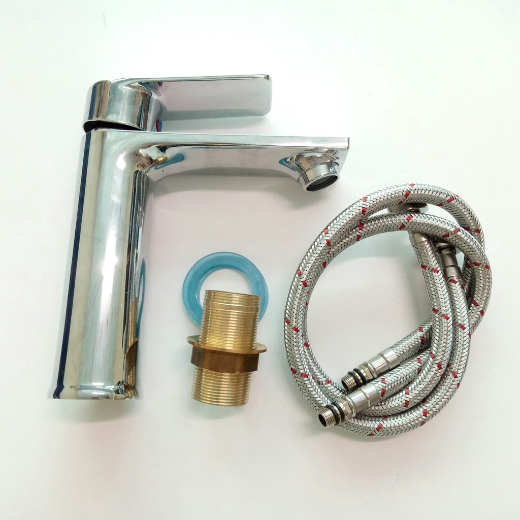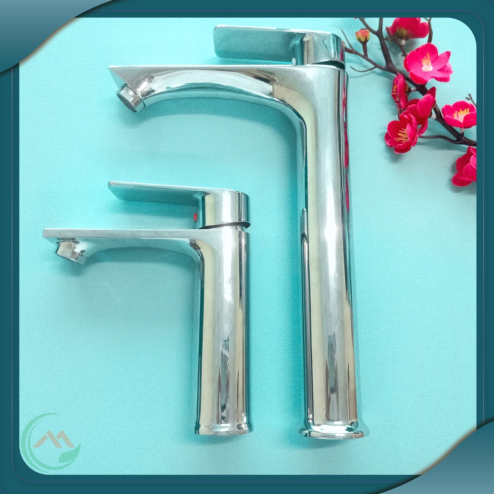 Vòi chậu phòng tắm, vòi Lavabo Nóng lạnh inox Bóng thiết kế thân trụ, tay gạt gật gù bằng vuông + Tặng dây cấp nước NL
