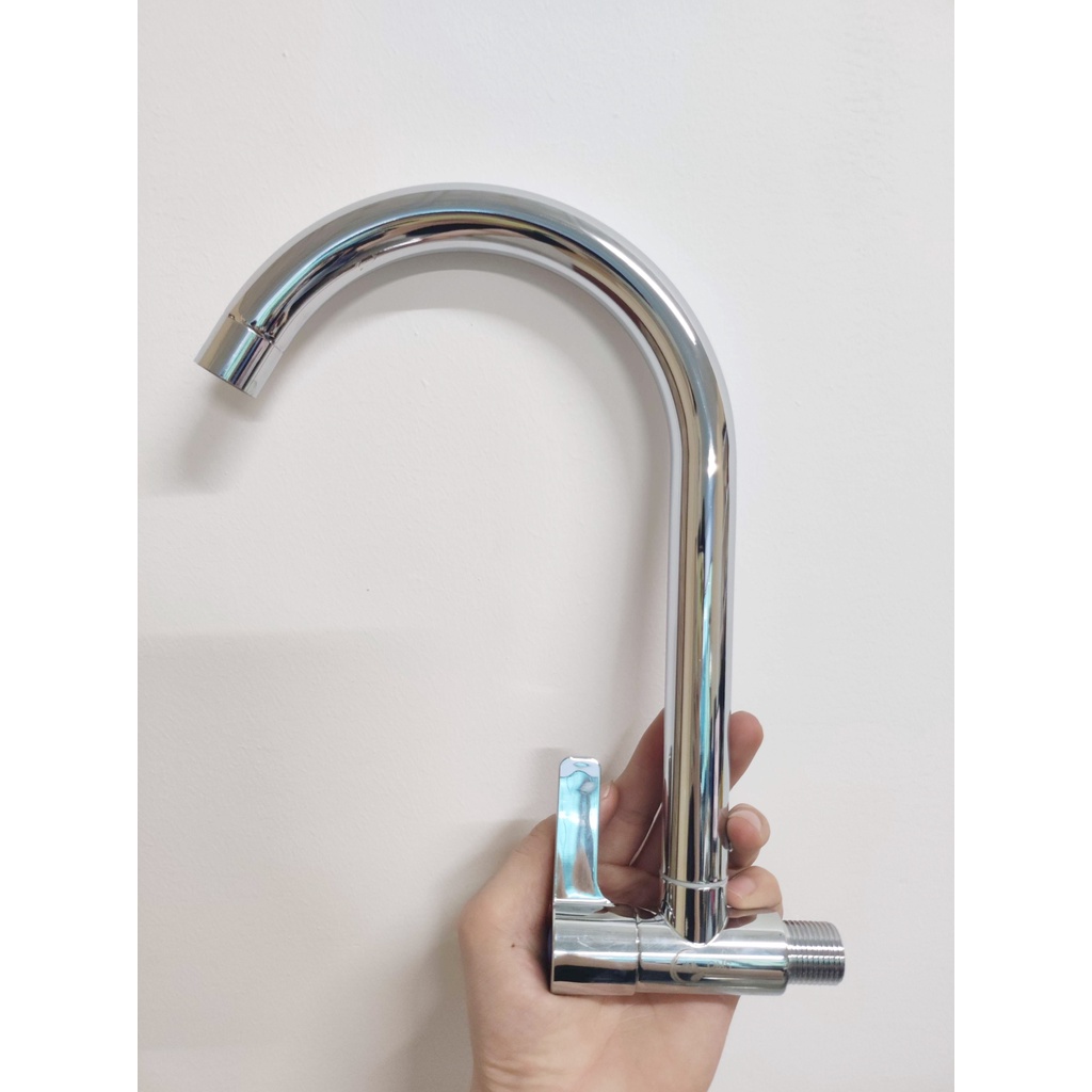 Đặc điểm nổi bật: - Vòi rửa bát thiết kế kiểu dáng cứng cáp, sáng bóng hiện đại, phù hợp với mọi không gian phòng bếp, cho phòng bếp thêm vẻ sang trọng, hiện đại. - Thiết kế vòi gắn tường gọn gàng, hiện đại, sang trọng - Vòi rửa bát 1 đường nước lạnh làm từ inox SUS304 mạ màu bạc không gỉ, có chất lượng tốt, tiện lợi khi sử dụng. - Vòi rửa bát lạnh giúp tiết kiệm nước và cho không gian bếp thêm tiện nghi, hiện đại. - Thời gian nấu ăn và dọn rửa trong bếp của chị em sẽ trở nên dễ dàng tiện lợi hơn bao giờ hết. - Vòi bếp lạnh có thể xoay 360 độ rất tiện lợi, dễ dàng xoay từ bồn rửa bên này sang bên kia với đĩa xoay siêu bền.