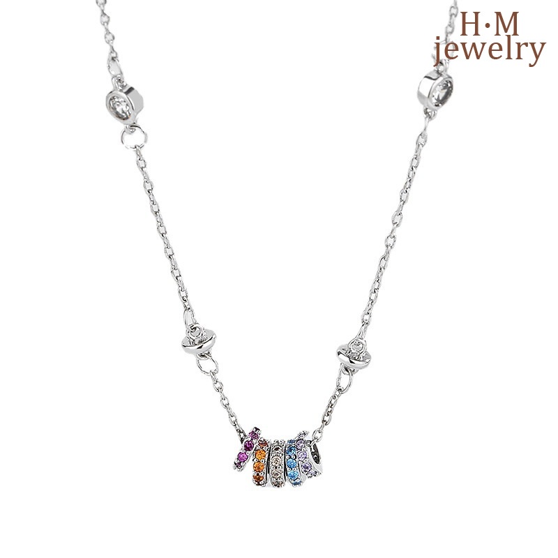 Giới thiệu Vòng cổ Bạc 925 Mặt Vòng Tròn Đính Đá Cầu Vồng May Mắn