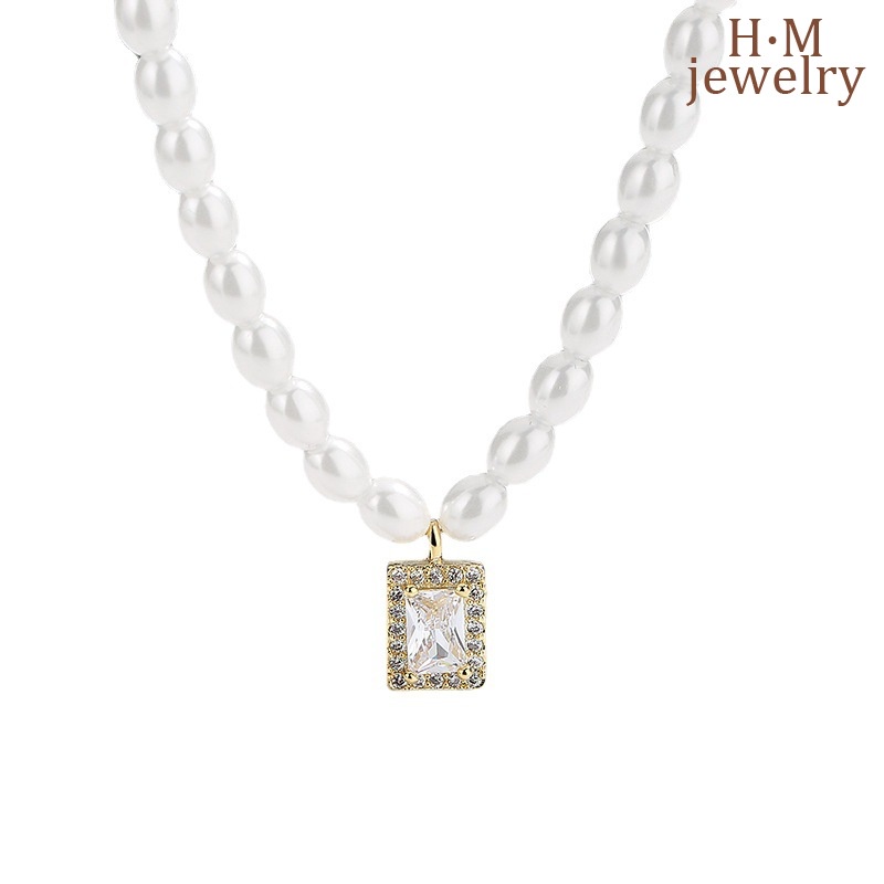 Giới thiệu Vòng cổ Bạc S925 Mặt Vuông Đính Đá Và Ngọc Trai Nhân Tạo Mới