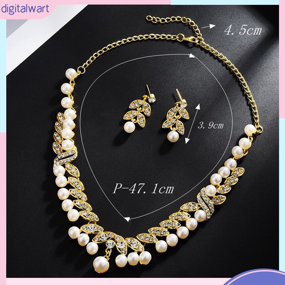 Giới thiệu Bộ Vòng cổ + Bông Tai Hình Chiếc Lá Đính Ngọc Trai Nhân Tạo & Kim Cương Giả