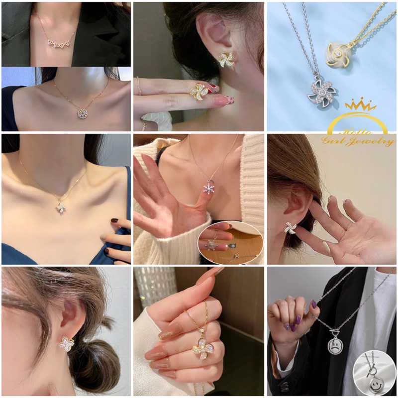 Giới thiệu Bộ vòng cổ + bông tai mạ bạc 925 AHELLOGIRL hình bông tuyết đính đá sang trọng xinh xắn