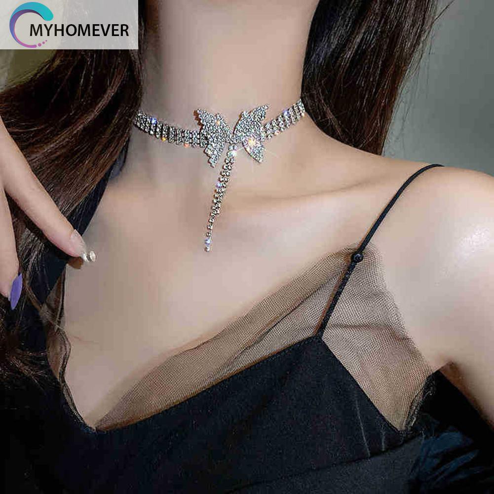 Giới thiệu Vòng cổ choker mặt hình bướm đính kim cương giả dạng tua rua thanh lịch