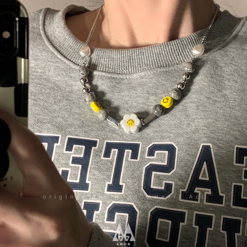 Giới thiệu Vòng cổ choker mặt hình xúc xắc ngọc trai đầu lâu bướm và mặt cười phong cách Hàn Quốc cho nam nữ