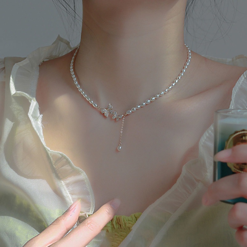 Giới thiệu Vòng cổ choker MAYEBE LAVEND hình bướm đính ngọc trai giả thời trang Hàn Quốc cao cấp sang trọng