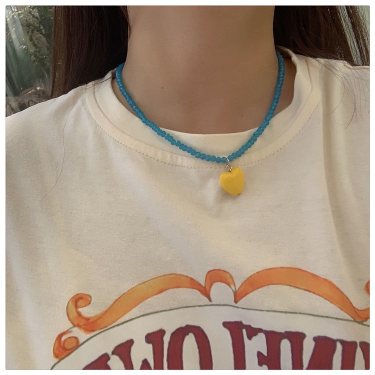 Giới thiệu Vòng cổ Chuỗi Hạt Pha Lê Trái Tim Màu Sắc Tương Phản Ngọt Ngào Cho Nữ