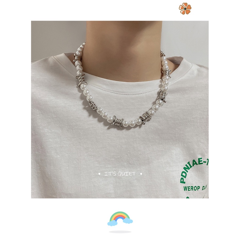 Giới thiệu Vòng cổ đính hạt ngọc trai nhân tạo phong cách hip hop dành cho nam và nữ