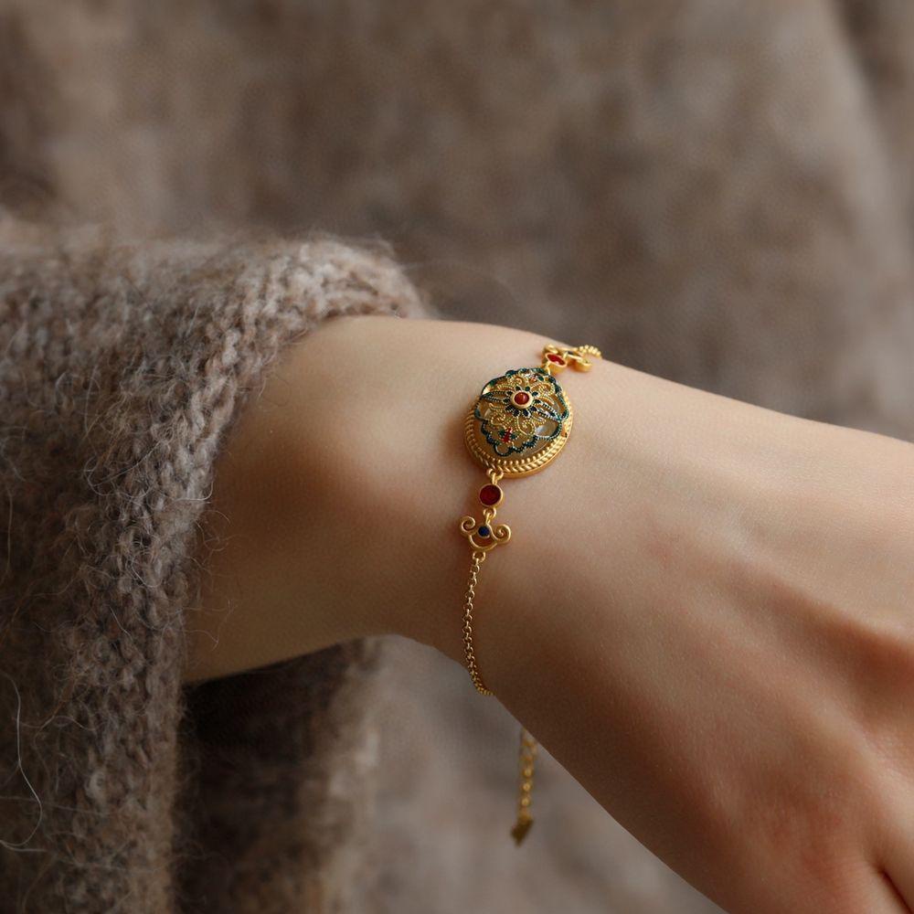 Đóng gói 1 chiếc vòng cổ Vòng cổ Vòng tay Phong cách Trung Quốc Đồ trang sức Vàng Vòng cổ Men Tua Đồng Phong cách Quốc gia Cổ Vòng cổ Đồ trang sức cưới Quà tặng Retro Tinh tế Thanh lịch Đơn giản Hợp thời trang