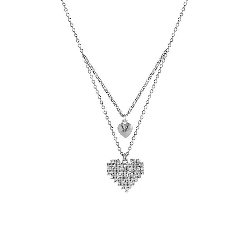 Giới thiệu Vòng cổ Hai Lớp Hình Trái Tim Đính Đá Thời Trang Cho Nữ