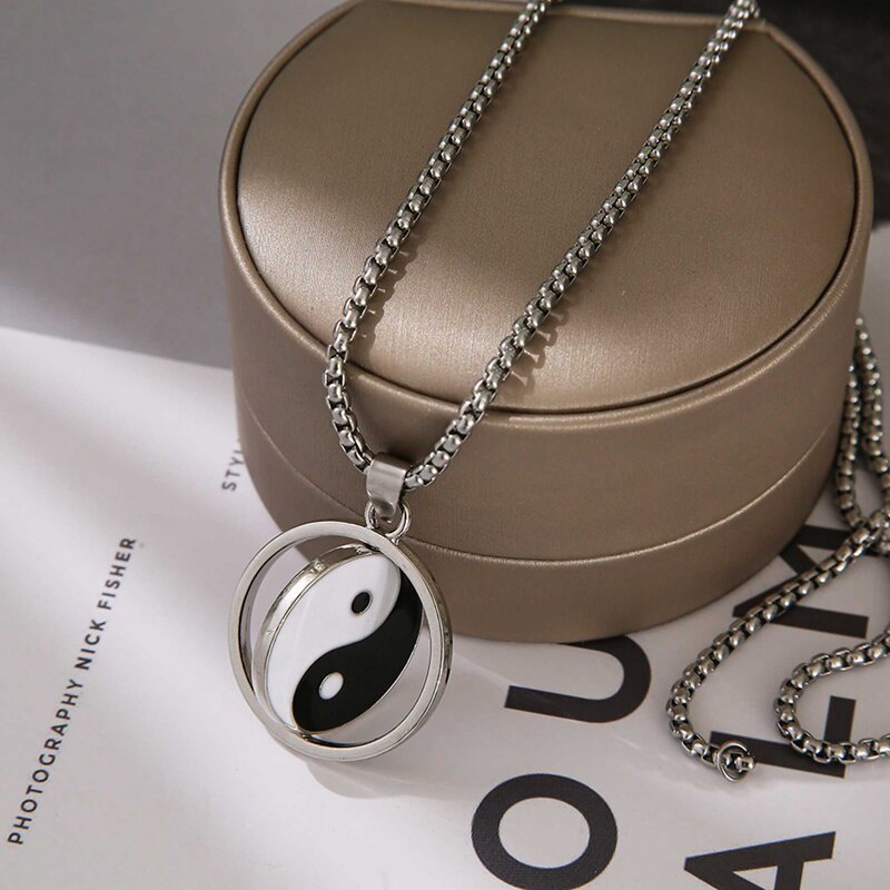 Vòng cổ Mặt Âm Dương Bằng Thép Không Gỉ Màu Trắng / Đen Phong Cách Yin and Yang Gossip Thái Cực Quyền Thời Trang Cho Nam