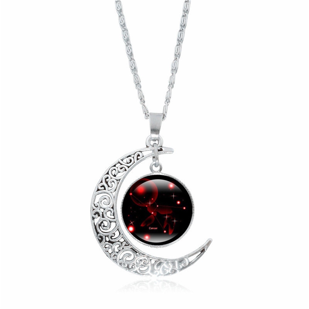 Tên sản phẩm: Vòng cổ 12 chòm sao mặt trăng Chất liệu: Mạ bạc hợp kim + Đá quý thủy tinh Màu sắc: Màu bạc Chiều dài của vòng cổ: 18,11 inch Đường kính của mặt vòng cổ: 1,57 inch Gói hàng bao gồm: 1 X vòng cổ
