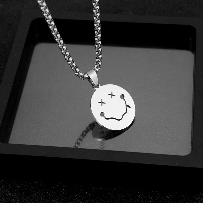 Specification: Funny smiley face necklace simple niche design necklace Style: Korean style/Korean style Material: alloy + stainless steel size: Pendant diameter is about 2cm Chain circumference approximately 60cm Type: Necklace Style: Unisex Modeling: Cartoon quantity: 1