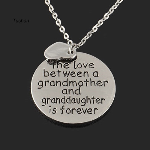 Sự chỉ rõ Vòng cổ trang sức nữ thời trang với thiết kế sáng tạo. Thủ công tinh tế, chạm khắc dòng chữ "tình yêu giữa bà và cháu gái", thể hiện tình yêu gia đình. Món quà tuyệt vời cho gia đình bạn.