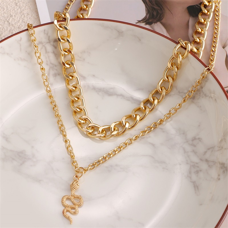 Tên sản phẩm: Phong cách punk chuỗi dày dây chuyền đôi mặt dây chuyền con rắn Chất liệu: Hợp kim Kích thước: Chiều dài dây chuyền 33cm / 50cm, dây mở rộng 5cm, mặt dây chuyền 3.2cm Màu sắc: Vàng trắng, vàng Phân loại: Vòng cổ Họa tiết: Con rắn Phong cách dây đeo: Dây sóng nước Quy trình xử lý: Mạ điện Dành cho: Unisex Phong cách: h=Hip-hop, Âu Mỹ, cá tính Số lượng: 1