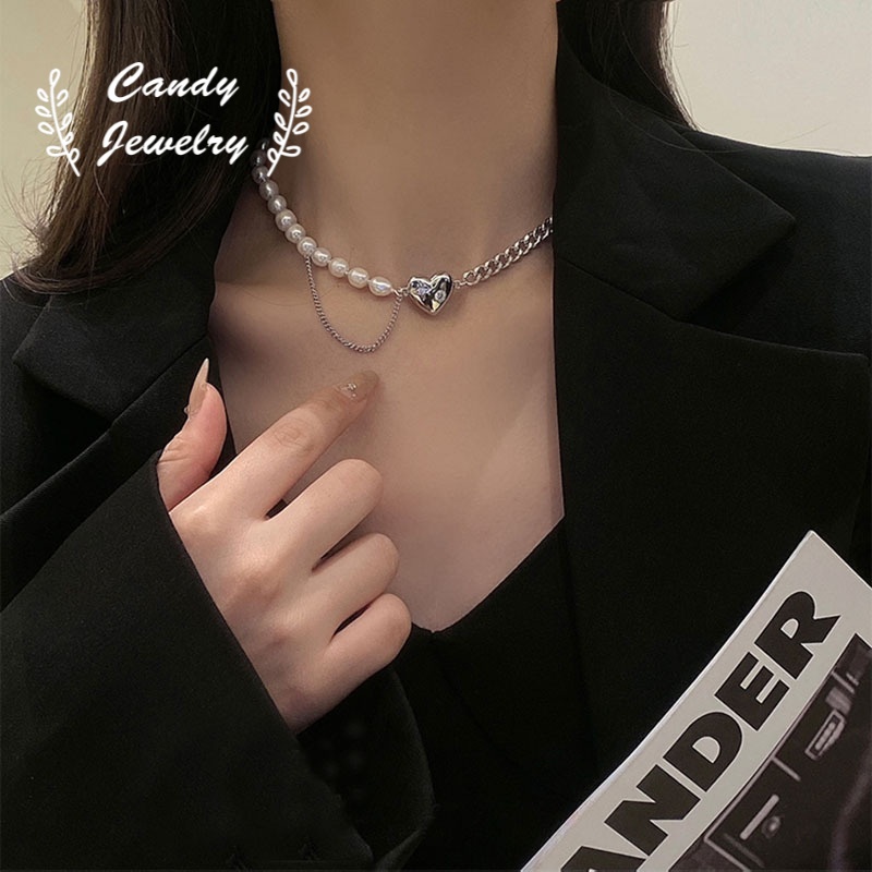 Giới thiệu Vòng cổ/vòng tay mặt hình trái tim xỏ ngọc trai giả phong cách thời trang Hàn Quốc tinh tế