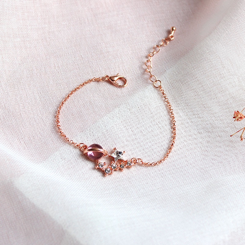 Giới thiệu Vòng Đeo Tay Chuỗi Hạt Đá Pha Lê Màu Hồng / Vàng Thời Trang Cho Nữ
