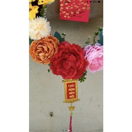 Giới thiệu Vòng hoa tết hoa hồng, hoa mẫu đơn, tiền vàng, thần tài trang trí tết 2022, siêu đẹp