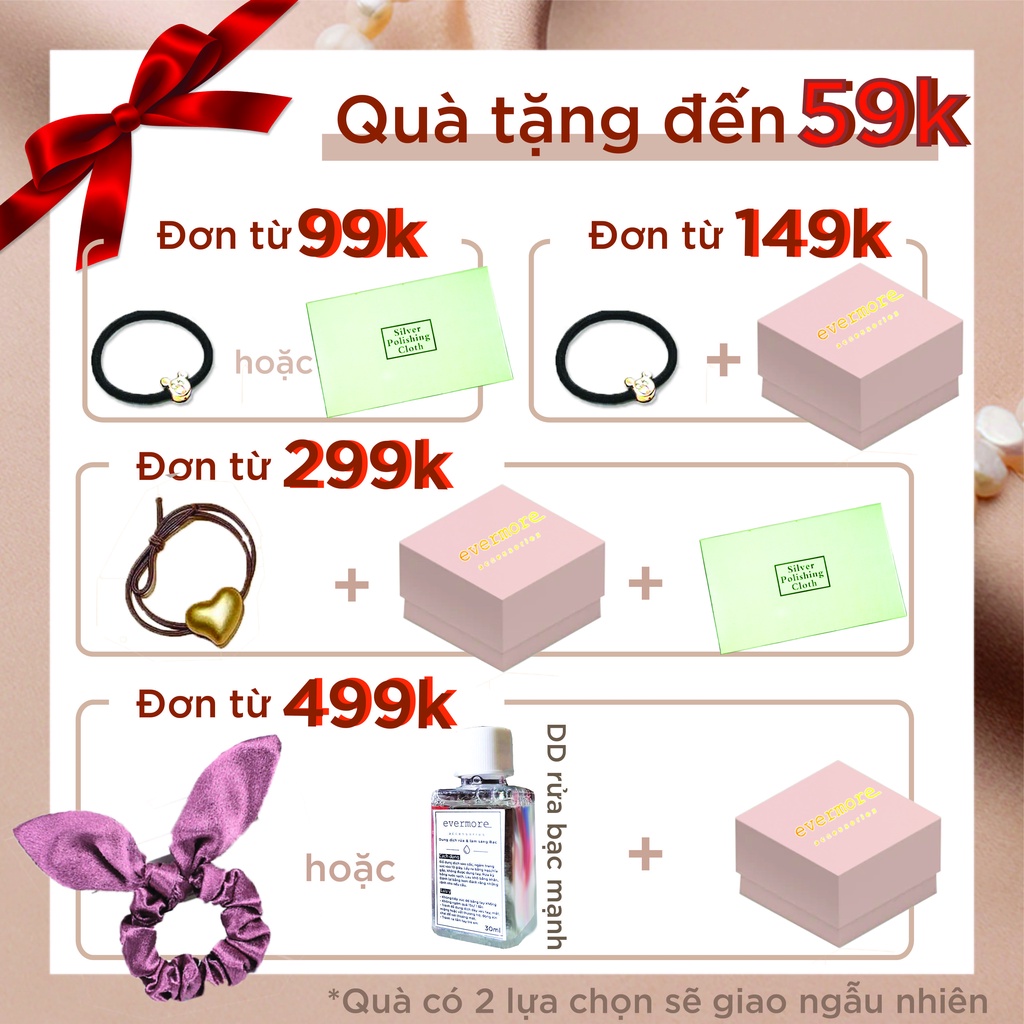 🌸 TẶNG KÈM BỘ QUÀ TẶNG 6 MÓN với đơn trên 199K: (QUÝ KHÁCH VUI LÒNG BẤM CHỌN QUÀ TẶNG KÈM vào đơn hàng để được nhận quà) 1. Hộp trắng 12x10cm (gói bên ngoài) 2. Hộp trang sức cao cấp: Hộp cứng phủ giấy kĩ thuật hồng ~ in logo mạ vàng. 3. Giấy cắt bên trong hộp 4. Thiệp viết lời chúc - phiếu bảo hành 5. Khăn lau bạc 6. Túi zip bảo quản trang sức