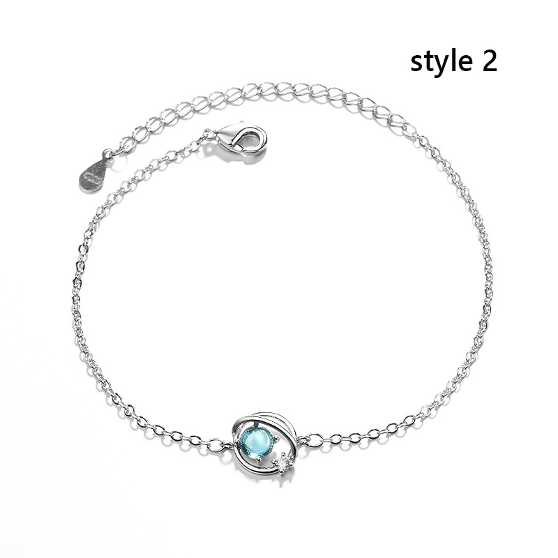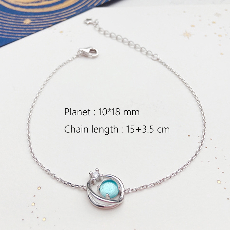 Giới thiệu Vòng tay bạc mặt viên pha lê xanh dương phong cách hành tinh Gelang Tumpuk cho nữ